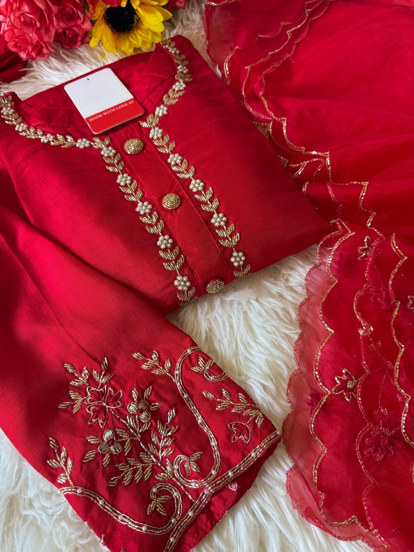 ur Red Embroidered Kurta Set with Dupatta will have you embracing vivid sophistication. The deep crimson color and elaborate embroidery on this outfit exude elegance. It's a versatile option for any event when paired with a coordinating dupatta, providing the ideal fusion of classic charm and modern flair for the style-conscious.